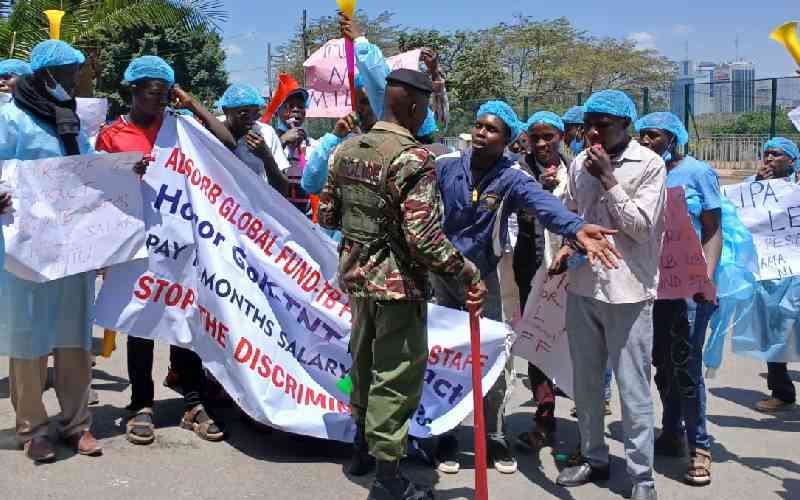 Global Fund TB Program staff on Wednesday picketed in Nairobi as they delivered a petition to the National Assembly and the Ministry of Health calling for immediate pay of their delayed salaries.